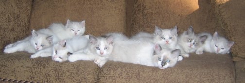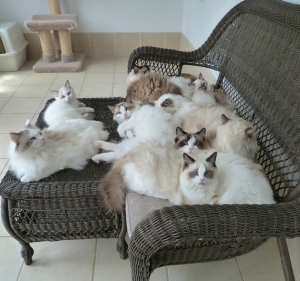 family. At the moment, there are no Pyrs lying across the doorstep but hopefully there will be one again in the near futur so that the Ragdolls have a cozy friend to cuddle